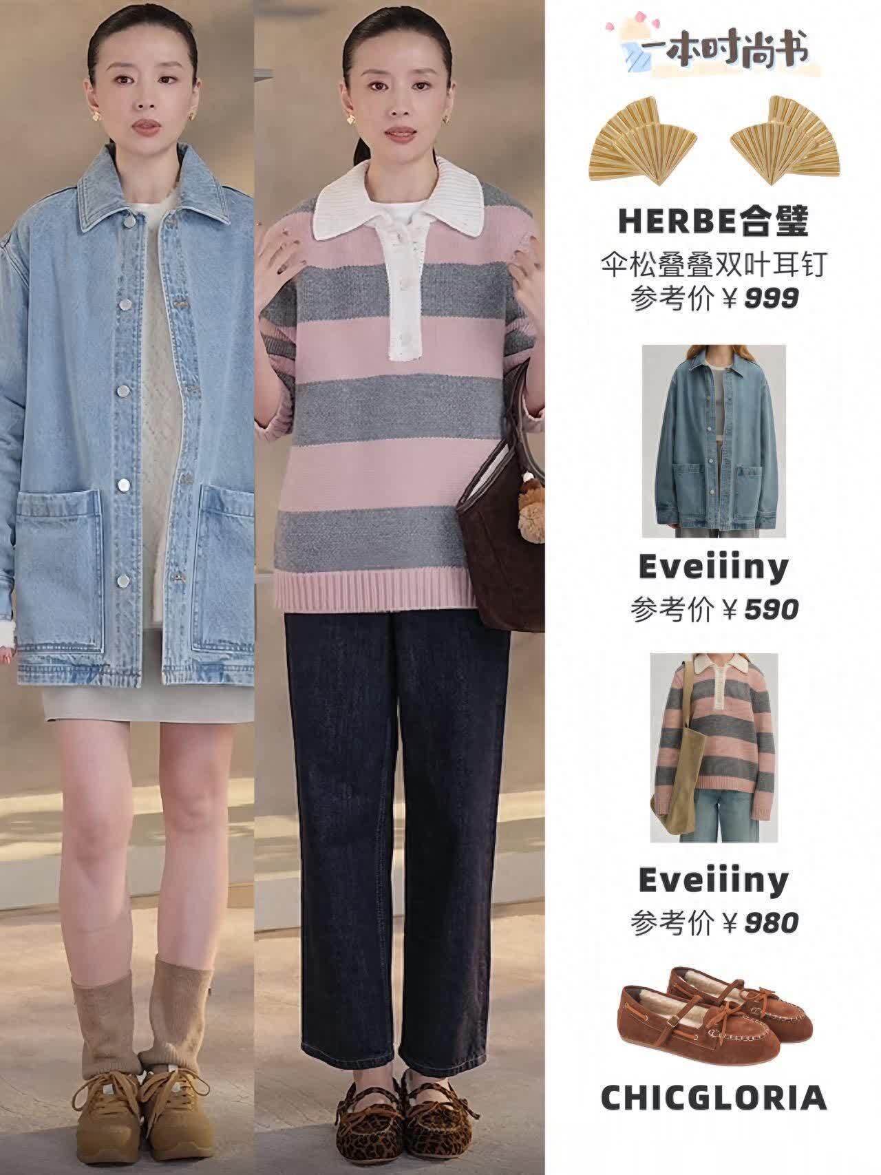 她的搭配从来不靠复杂单品撑场面,全凭“小细节”加分。比如那对伞松叠叠双叶耳环,设计简约却有弧度,戴在耳边不会太抢眼,却能给素净的穿搭添点灵动感。配针织衫时,耳环的金属光泽和毛衣的软糯质感撞在一起,刚柔相济;搭衬衫时,又能中和衬衫的严肃,多了份温柔。还有项链和戒指,款式不花哨,却像给穿搭“画龙点睛”,比如一条细细的锁骨链,在开衫领口若隐若现,比戴一堆夸张首饰高级多了。