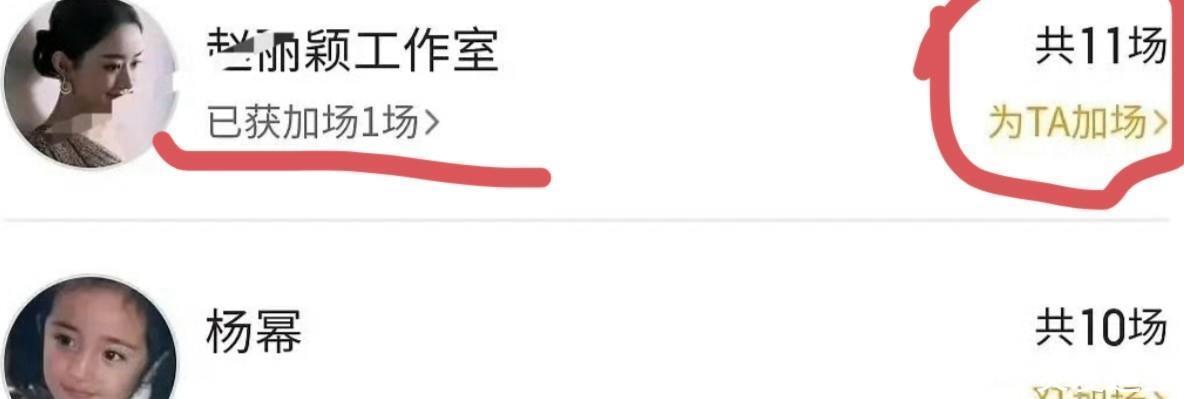 接着,杨幂的10场也被加了一场。这是在你追我赶吗?两个都是11场,又平手了。